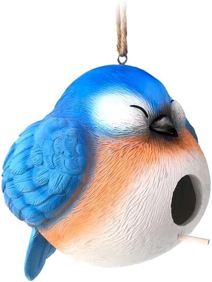 Our popular line of decorative birdhouses are made of durable handpainted resin .