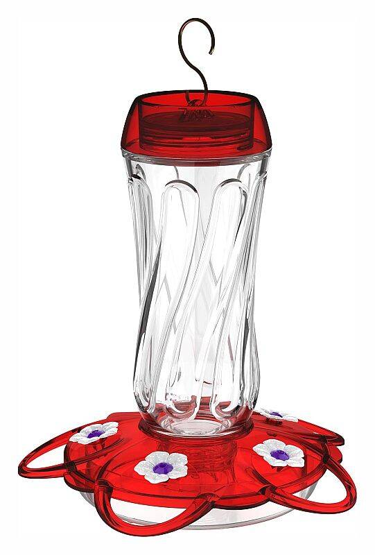 The Orion Hummingbird Feeder features a glass nectar bottle and a colorful red top and base with five integrated perch feeding stations. The built-in ant moat stops ants right in their tracks, keeping precious nectar fresh for hungry hummers. With a 16 oz. nectar capacity, the Orion provides plenty of nectar to keep hummingbirds happy and coming back for more! The wide bottle opening and detachable flat base make filling easy and cleaning a breeze. When cleaning your hummingbird feeder, do not put your feeder in the dishwasher, as the high temperatures can permanently damage the feeder parts.