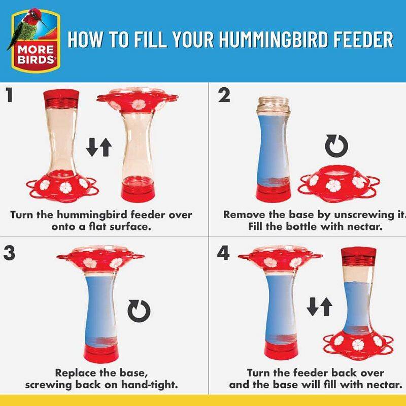 - Red is a hummingbird's favorite color; attract more with the red top and base