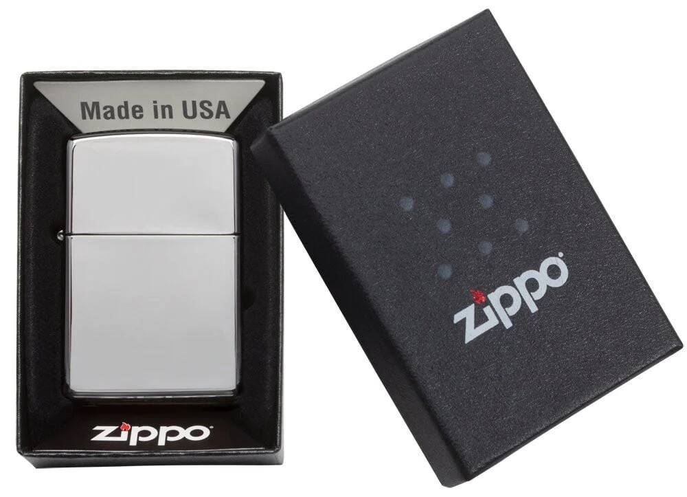 Classic high polished chrome Zippo lighter.