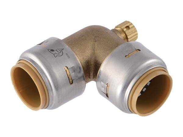 SharkBite Max™ 90-degree elbows with a drain/vent allow for water to be drained out of lines. Max 90-degree elbows are ideal for applications like draining irrigation systems or winterizing hose bibbs.
