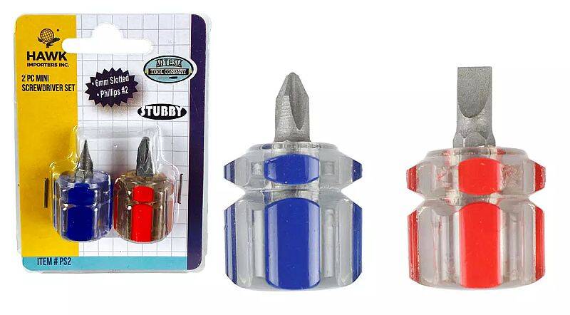 2-Pack Mini Stubby Screwdrivers:  1 Phillips, 1 Slotted