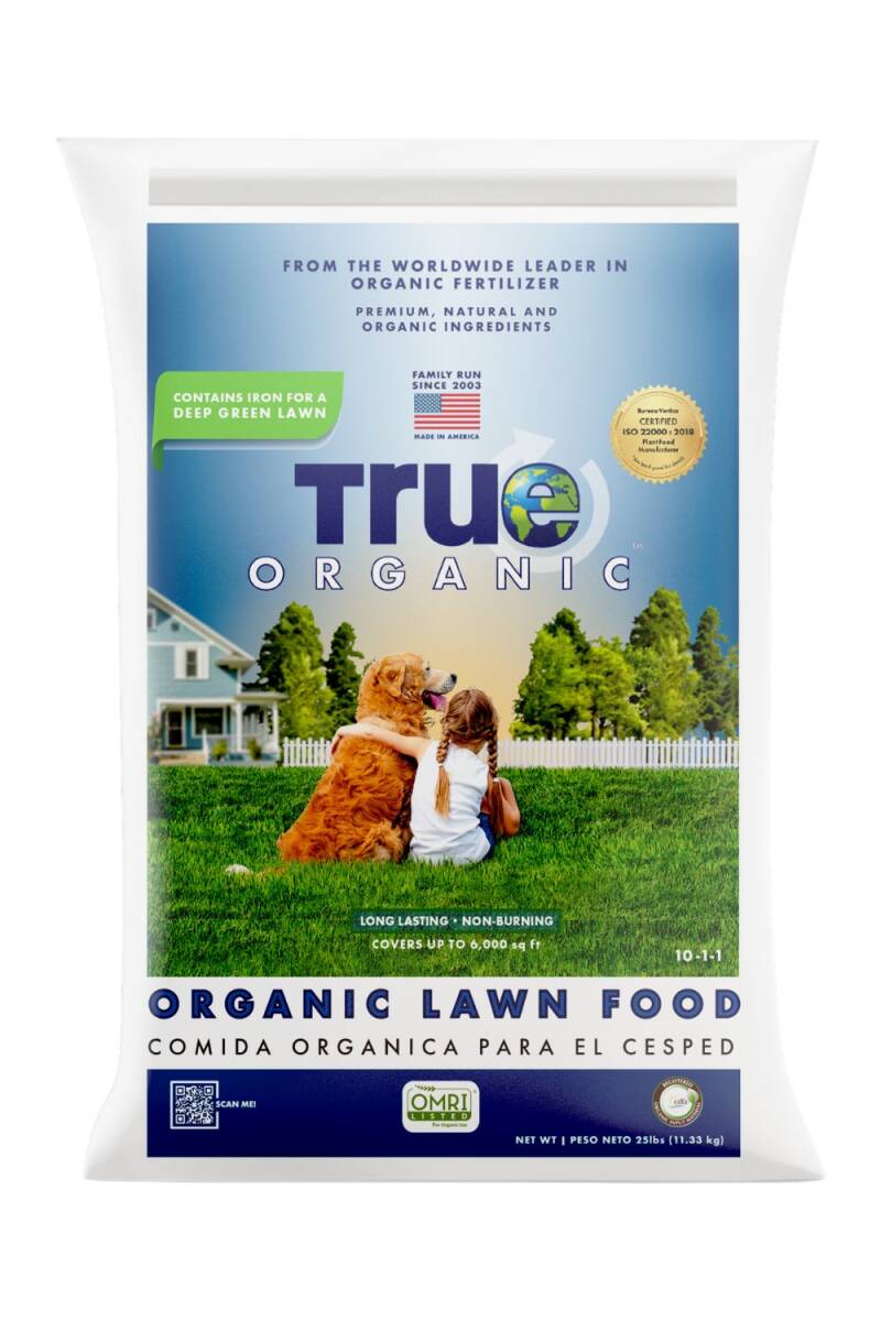 Use True Organic Lawn Food to promote the growth of a healthy lawn. No harsh synthetic chemicals – builds a thick, green lawn naturally. Will not burn your grass when used as directed. Can be used around kids and pets – safe to walk on immediately after application. Can be used on both established and newly seeded or sodded lawns. Supplies long-lasting nitrogen and iron, essential nutrients that help promote a deeper green color and more vigorous growth. No sludge, fillers, or additives. NPK 10-1-1.