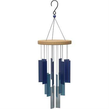 Shades of ocean blue glass will shimmer and give a unique sound when the winds blow. Measures a full 24 inches when hung to create an eye-catching focal point