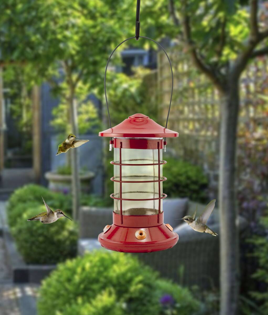 Modern Farmhouse Fire Engine Red Port Lantern Hummingbird Feeder, 26-Ounce Capacity