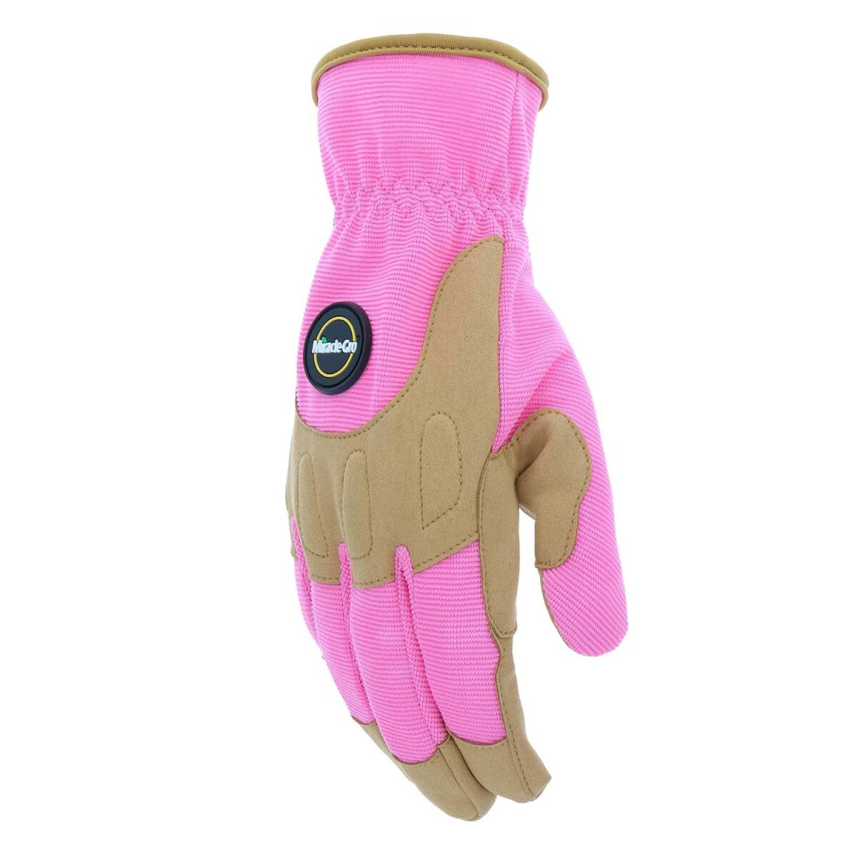 Hi-Dex Leather Palm Women's Gardening Gloves, 1-Pair, Pink, S