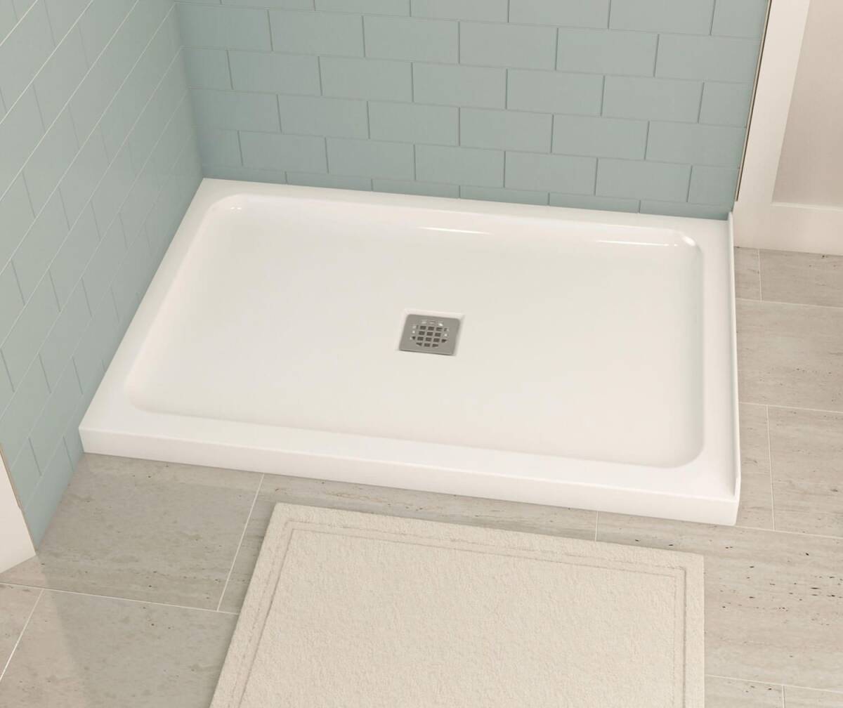 47-7/8-Inch x 32-Inch White Acrylic Alcove Or Corner Shower Base With Center Drain