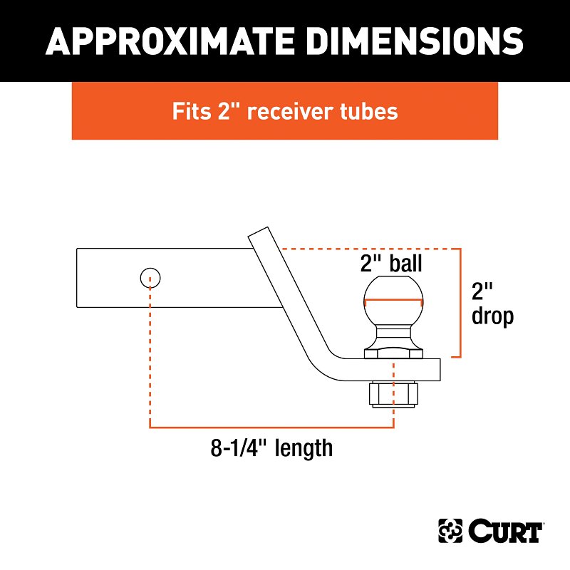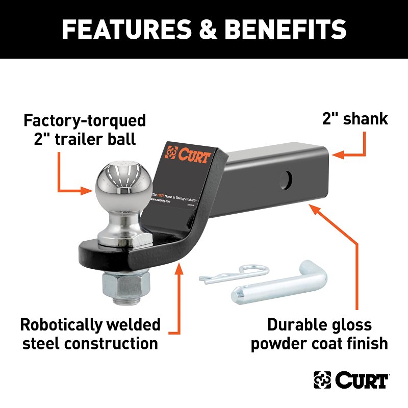 - Factory-torqued CURT trailer ball accepts a 2 in coupler