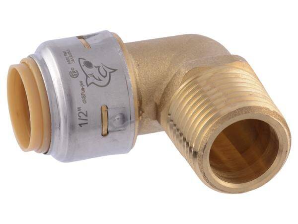 SharkBite Max™ male adapter elbows are designed to connect CTS pipe to a FNPT threaded connection. Compatible with PEX, copper, CPVC, PE-RT or HDPE SDR-9 in any combination, the Max adapter elbows are ideal for pipe transitions.
