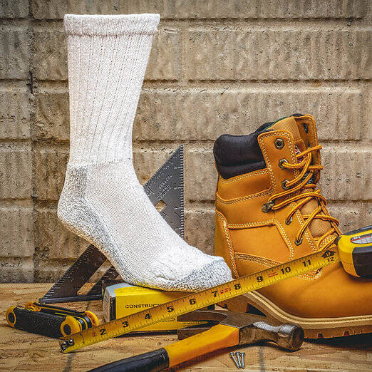 White Industrial Steel Toe Cotton Blend Men's Crew Sock, 1-Pack, L