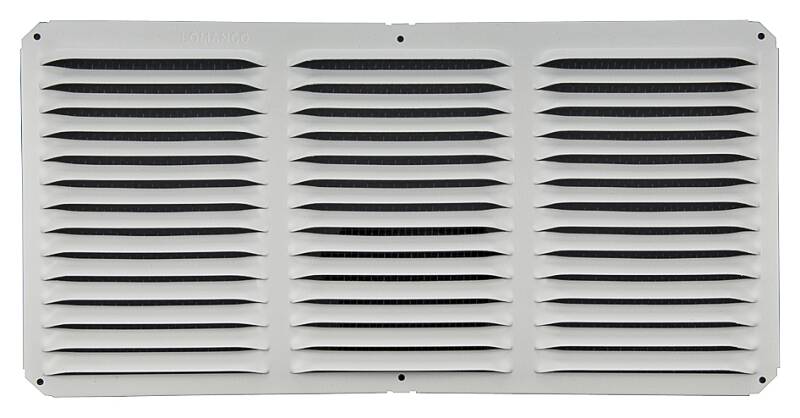 All aluminum, rust-free construction; overall size of 8" x 16" louver; 8 x 8 perma-coated aluminum screen attached; pre-drilled holes; unique eyebrow designed louvers provides maximum ventilating capacity with weather infiltration; 65 square inches of netfree area. ALUMINUM - UNDER EAVE C SERIES OA Size In=8 x 16 Color=White