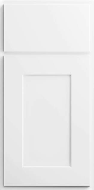 • A ½” reveal, 2½” wide shaker style MDF door with a flat center panel, Mortise and Tenon construction, slab drawer front.
