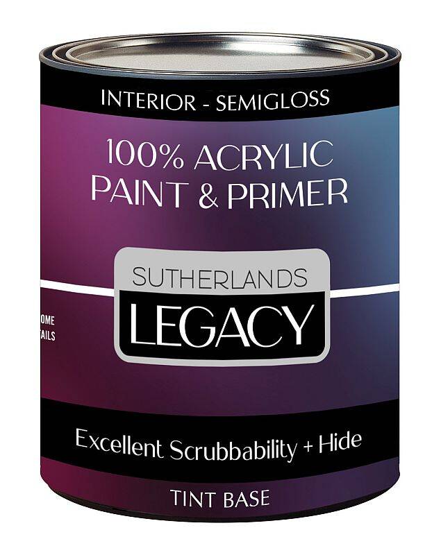 Sutherlands Legacy Paint is 100% acrylic paint designed for exceptional durability and coverage. Its advanced formula offers excellent scrubbability, making it ideal for high-traffic areas that require frequent cleaning. Available in a variety of colors and finishes to suit your style.