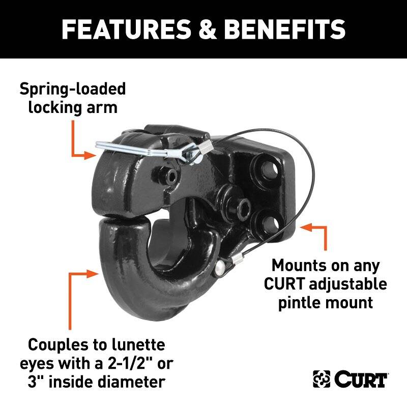 - Mounts on any CURT adjustable pintle mount
