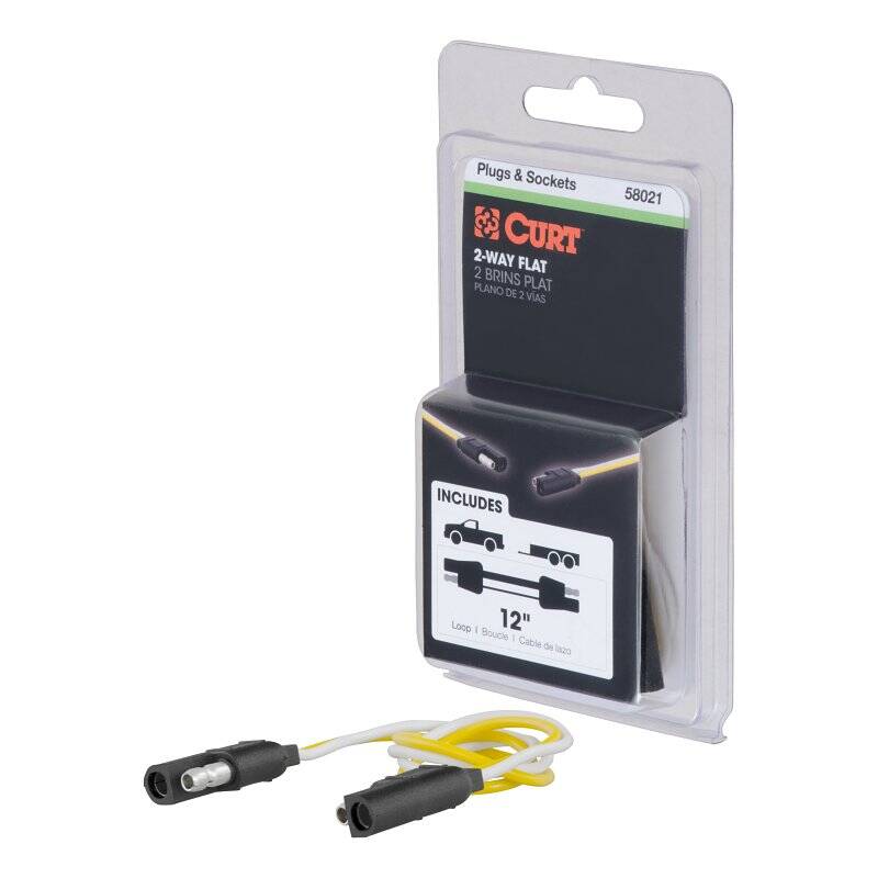 Like trailer hitches and ball mounts, electrical connectors range all over the board in shape, size and capability, but no matter what your trailer's electrical functions are, you need a solid connection to keep the power flowing and ensure safety on the road. Curt electrical connectors are designed and manufactured to give you a reliable connection every time you plug in your trailer. This two-way flat wiring connector is designed to supply power to an extra electrical component on an automotive vehicle, motorcycle, boat, ATV and more. It can be used as disconnect or to wire in any number of electrical accessories such as a fan, an extra light, audio equipment or a battery. It features durable rubber-molded construction and is made with 12 in of color-coded, bonded loop wire. The wires can be cut to splice into existing wiring or left as a loop to function as a useful extension harness.