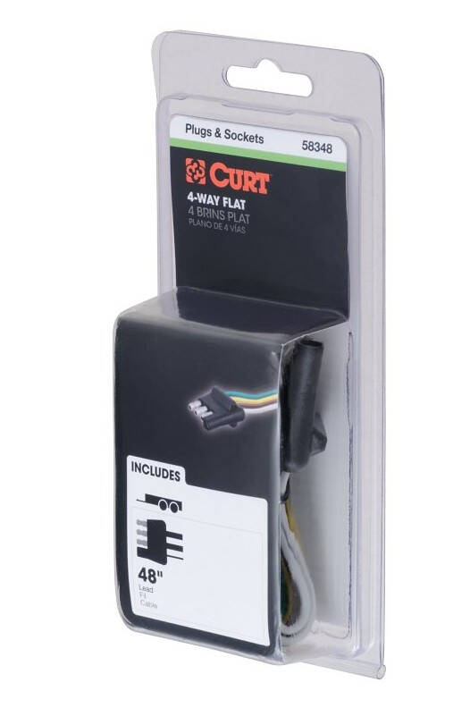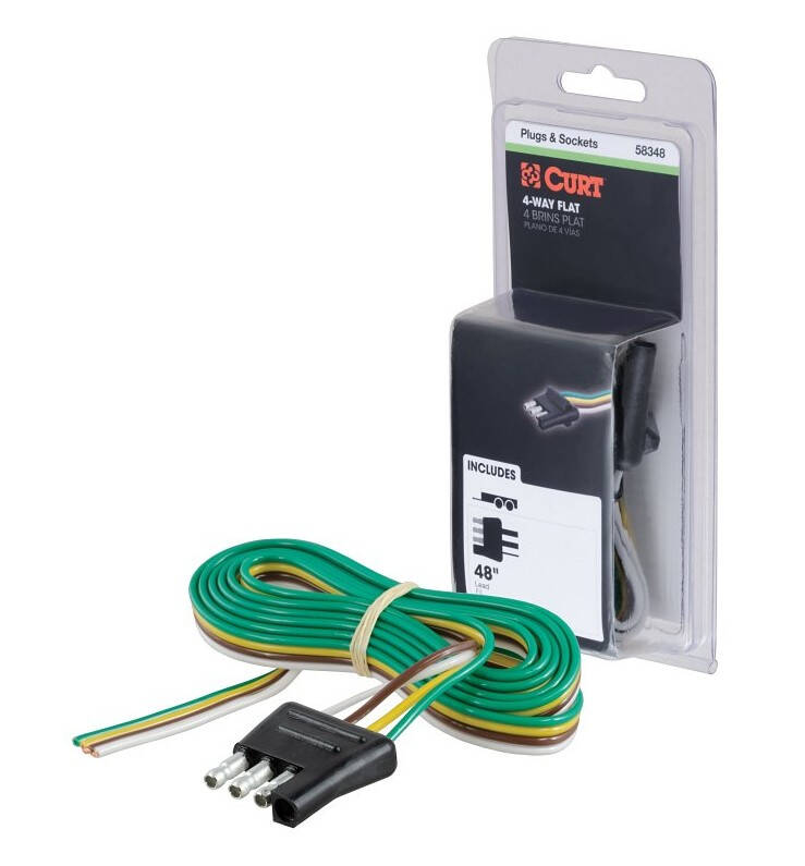 This 4-way flat connector is designed to supply power for tail lights, turn signals and brake lights, as well as a ground connection. It features durable rubber-molded construction and is made with 48" of standard color-coded, bonded wire to easily splice into your trailer's wiring system. This 4-way flat connector is a male-end plug, specifically designed for the trailer side of the connection. It is compatible with all 2-wire vehicle systems.Specifications