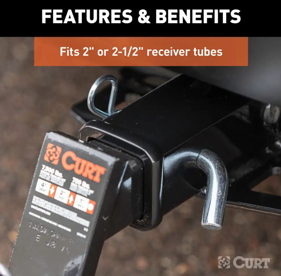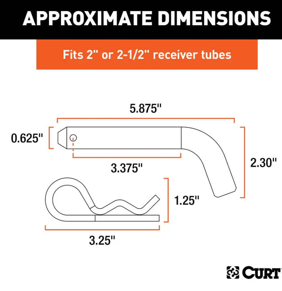 - 5/8" diameter pin fits 2" or 2-1/2" receiver tubes