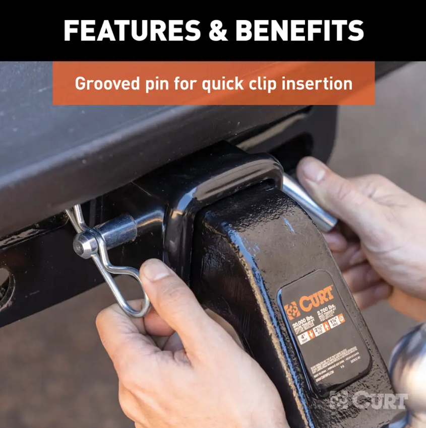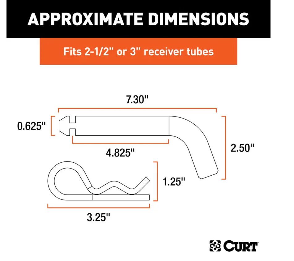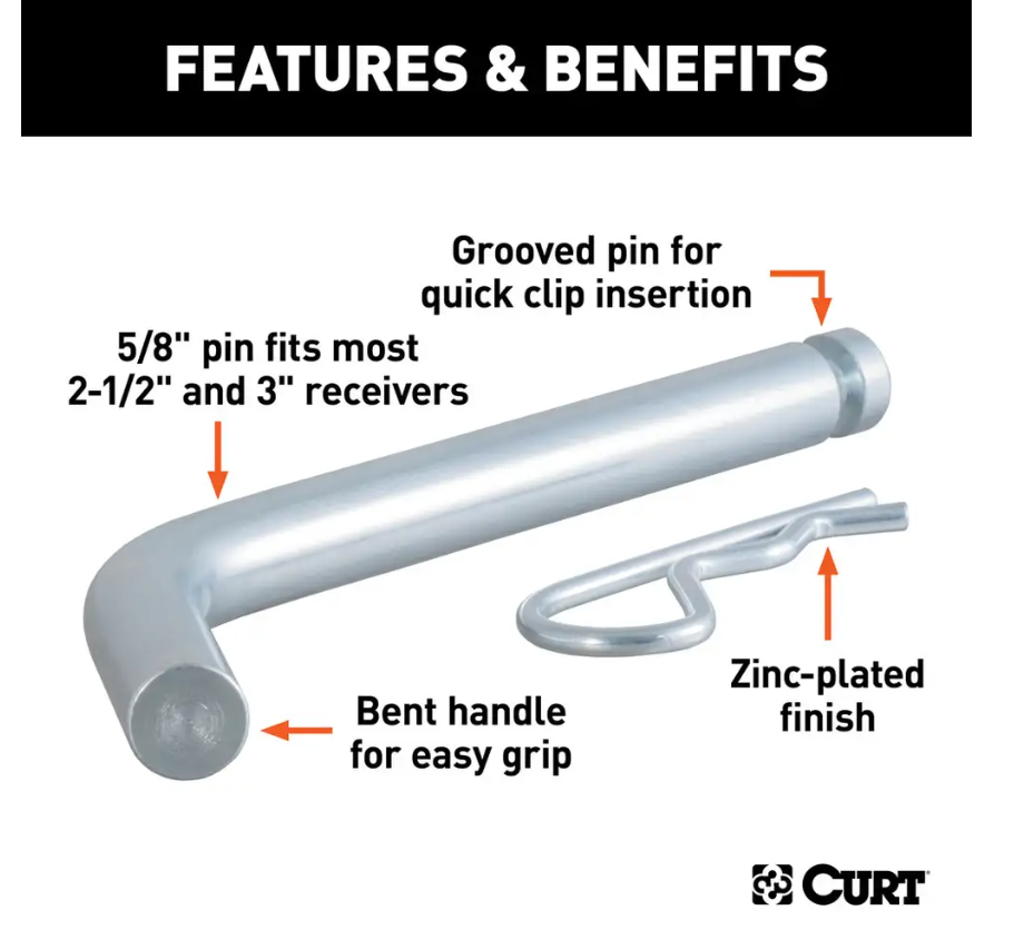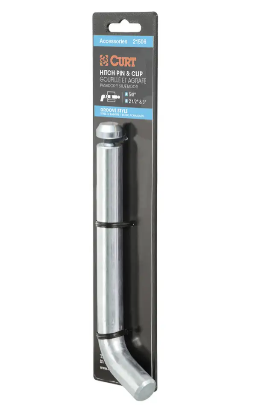 This heavy-duty hitch pin is made extra-long and has a 5/8" diameter to fit any 3" x 3" receiver with a 5/8" pin hole. It also features an included retainer clip and a grooved tip for easy clip access from any angle.