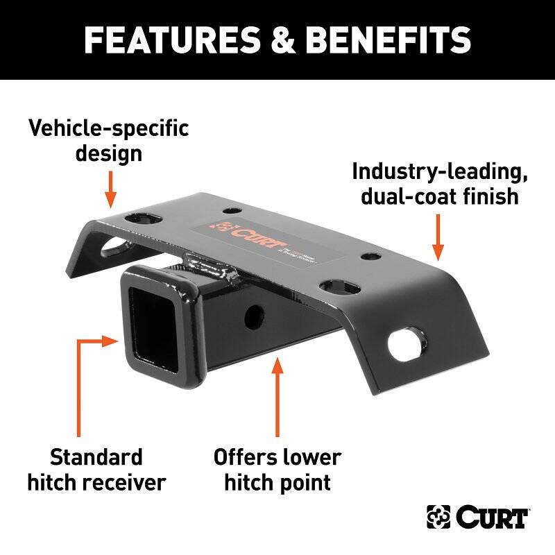 A Curt bumper hitch mounts onto your vehicle's bumper, rather than the frame and provides a receiver tube for a ball mount, cargo carrier, bike rack or other hitch-mounted insert. Unlike a bumper mount, which is simply a hole in the vehicle's bumper for installing a trailer ball, a bumper hitch allows for adjustment and flexibility in towing application. This Curt receiver-style bumper mount hitch accepts a 2 x 2 in ball mount shank and can tow up to 5,000 lb of gross trailer weight and 500 lb of tongue weight. This makes the bumper hitch a great choice for hauling many smaller types of trailers, including boat trailers, utility trailers, popup campers and more. It should be noted, however, that the weight carrying capacity is always dependent on the bumper's weight capacity rating. Curt bumper mount hitches come with a gloss black powder coat finish and provide a simple towing solution. They easily bolt onto the bottom of a step bumper on a pickup truck or SUV and offer a lower hitch point to provide level trailer towing. Each model comes complete with mounting hardware and safety chain hookups.