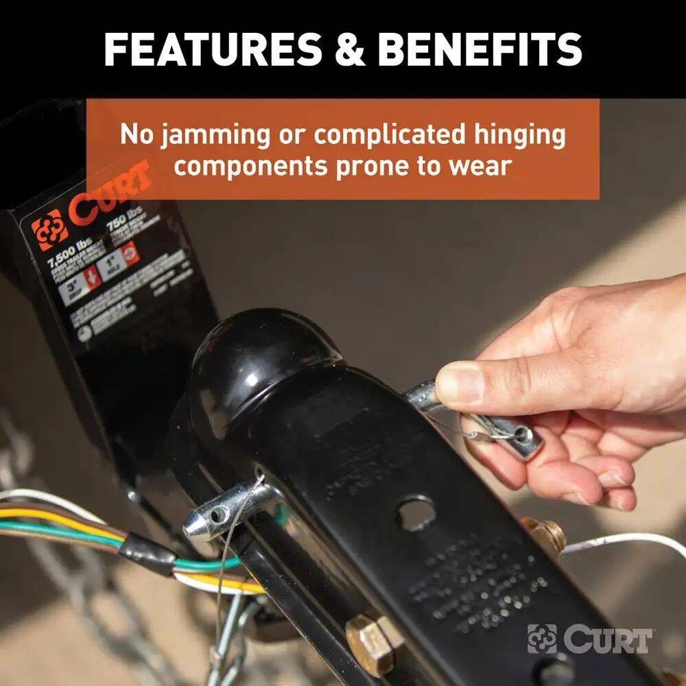 To couple your trailer with QuickPin™, just drop the trailer tongue onto the ball, slide in the pin, and that's it! No more wrestling with the latch, trying to get it to snap down onto the ball. Traditional latches can wear out and become corroded, leading to jams, broken parts and frustration. QuickPin™ is simple, innovative and requires no adjusting or tightening.