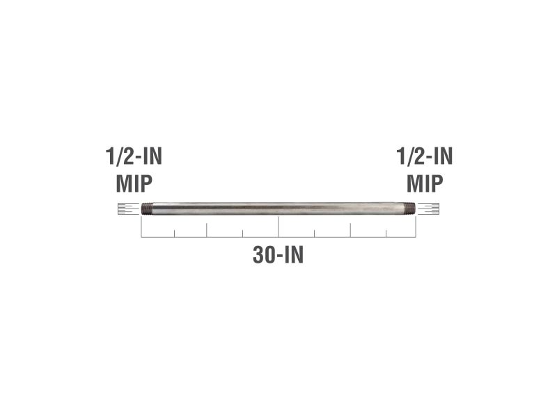 30 in. x 1/2 in. Steel Galvanized Pipe Nipple - Threaded, Schedule 40, 1-Pack