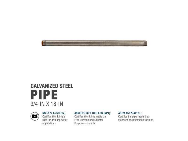 18 in. x 3/4 in. Steel Galvanized Pipe Nipple - Threaded, Schedule 40, 1-Pack