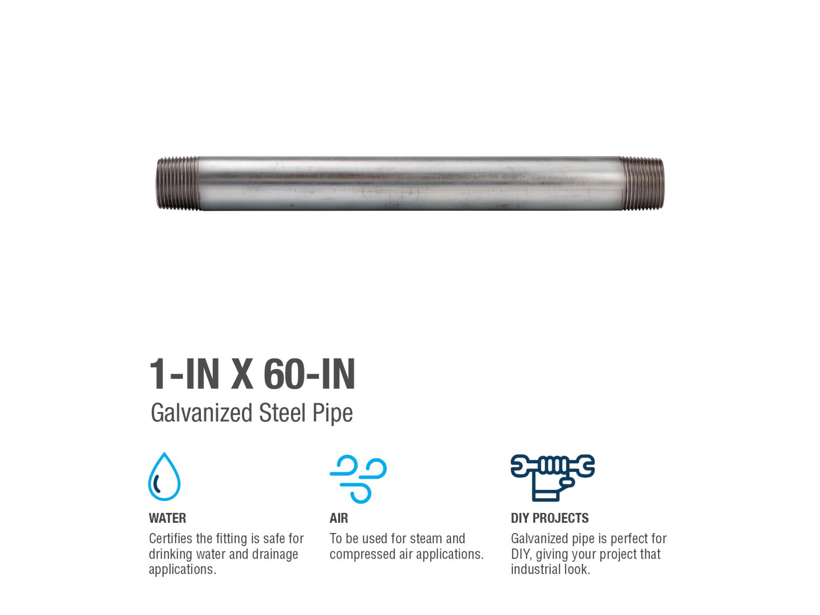 60 in. x 1 in. Steel Galvanized Pipe Nipple - Threaded, Schedule 40, 1-Pack