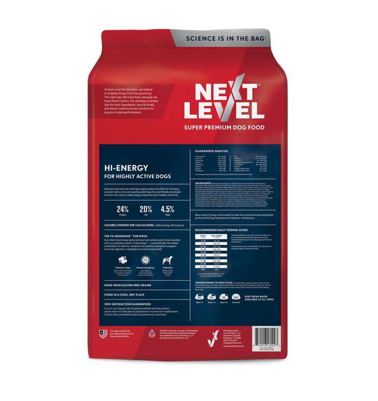 Optimally balanced with 24% high-quality protein and 20% fat, Hi-Energy provides highly active and sporting adult dogs the scientifically-developed nutrition they need for peak energy, endurance and a healthy, active life.