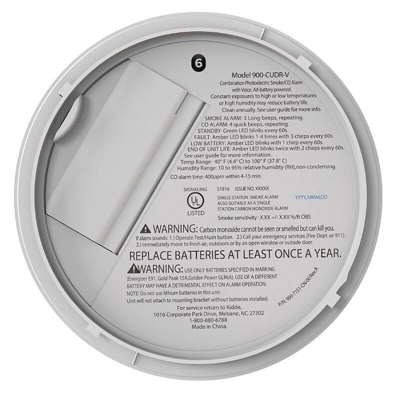 - Voice alerts - Voice warning alerts of “Fire!” when a smoke or ?re hazard is present, “Warning: Carbon Monoxide!” when CO is detected or “Replace Alarm” at the end of life of the device.