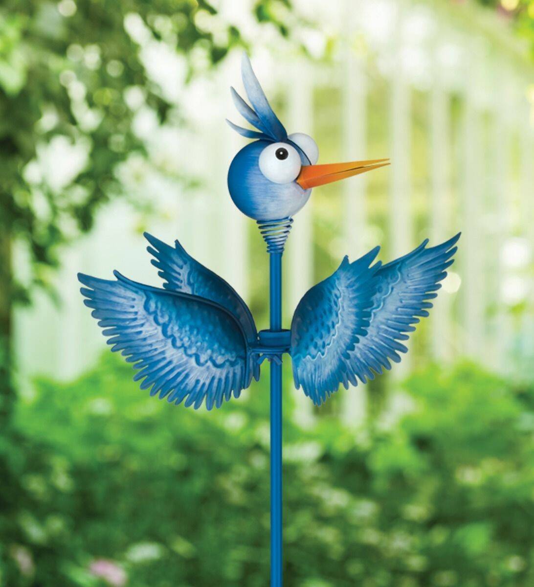 Goofy birds with textured wings. Get dizzy with delight watching these bright birds whirl in the breeze.