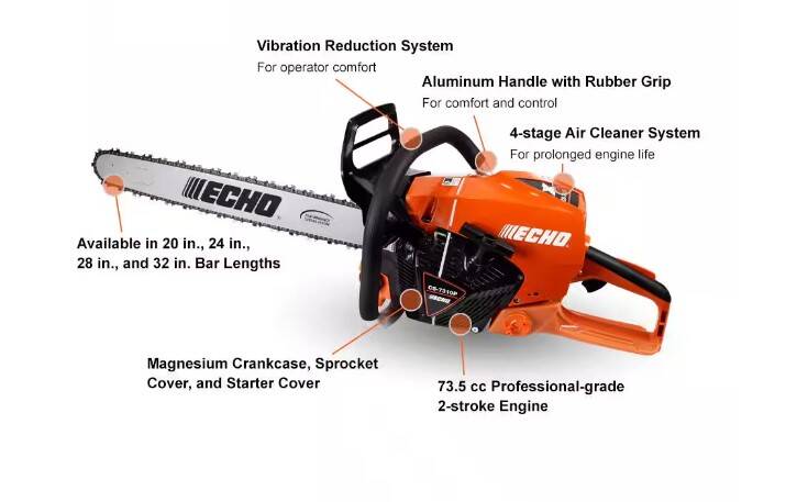 • 73.5 cc professional-grade, 2-stroke engine