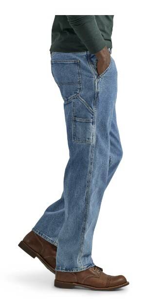 These carpenter jeans are perfect for anyone who wants a loose fit, straight leg silhouette, and timeless workwear style. They feature extra side pockets and a hammer loop, with details like branded hardware and our iconic leather patch convenience and features a classic fit just below the waist with a full, straight leg.