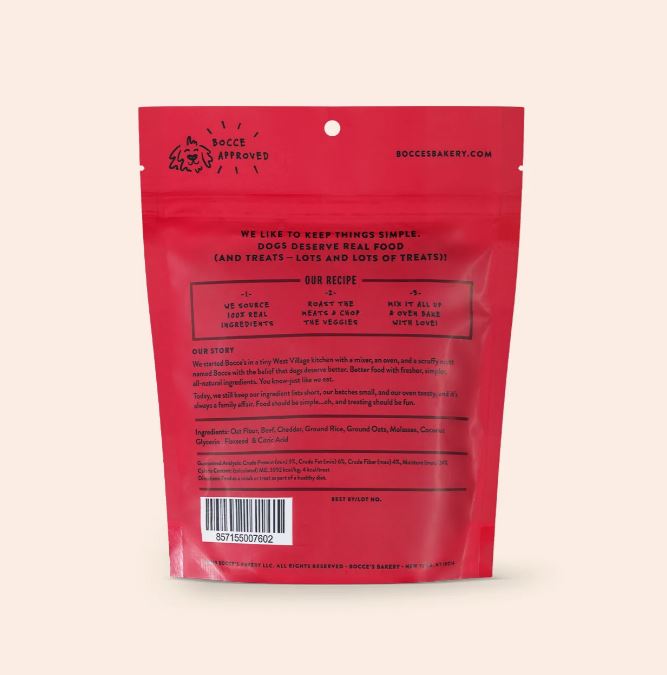 Ingredients Oat Flour, Beef, Cheddar, Ground Rice, Ground Oats, Molasses, Coconut Glycerin, Flaxseed, Citric Acid