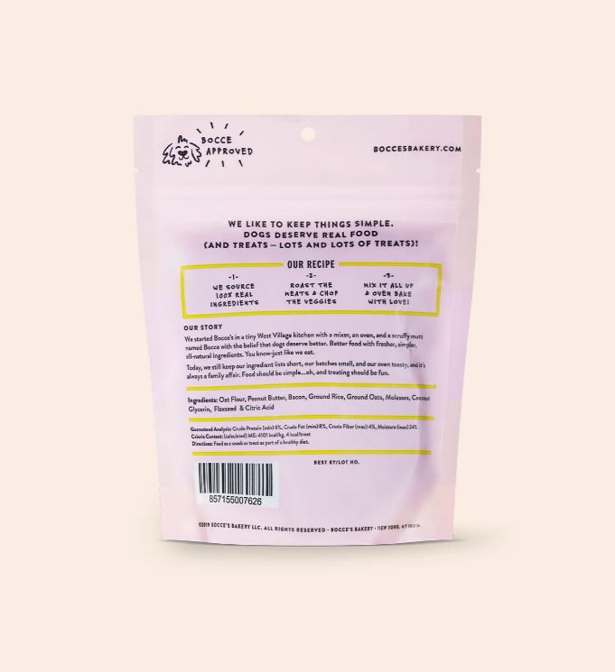 Ingredients Oat Flour, Peanut Butter, Bacon, Ground Rice, Ground Oats, Molasses, Coconut Glycerin, Flaxseed, Citric Acid