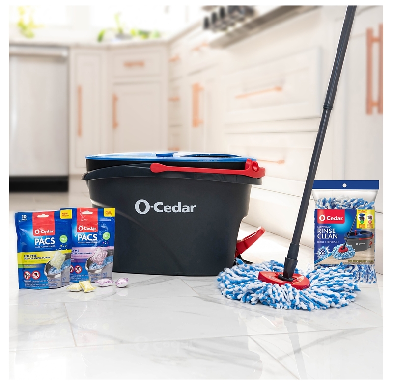 Rethink the way you clean with a fresh start, every time. The EasyWring™ RinseClean™ Spin Mop features an innovative 2-tank bucket system to separate clean and dirty water for clean water every rinse. Equipped with a foot-activated pedal, the hands-free system is complete with a powerful microfiber mop head that removes 99% of bacteria with water.** A truly deep clean has never been easier.