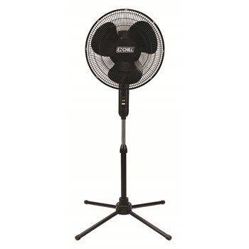 Black oscillating pedestal fan with 3 speed settings to control air flow.