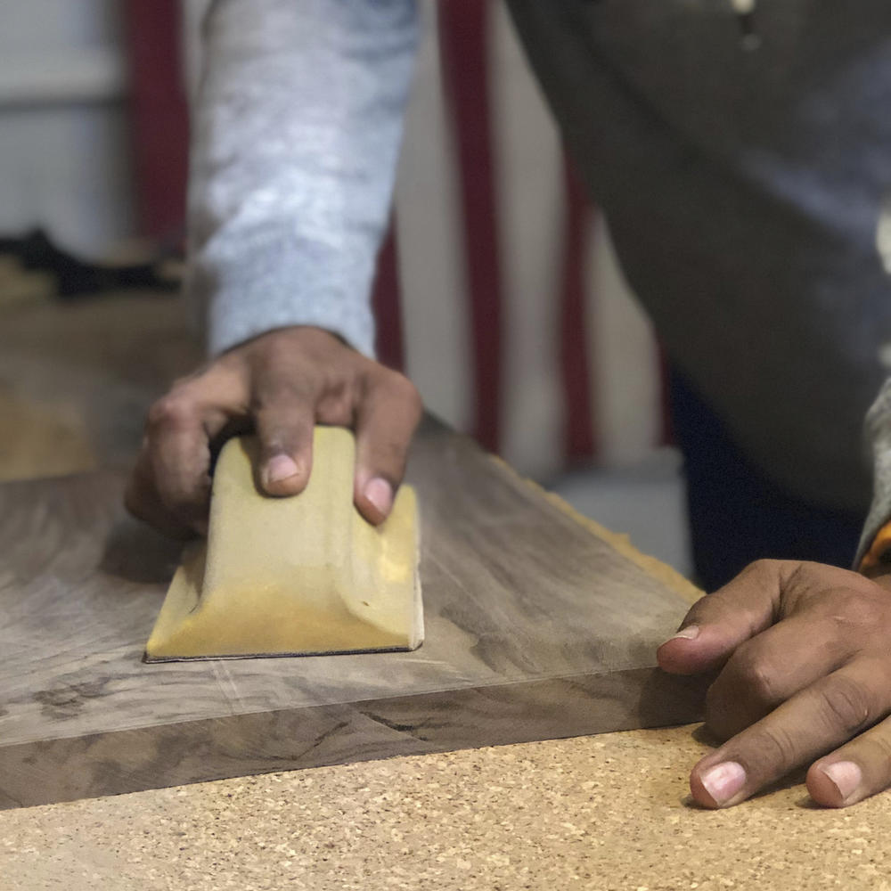 Finish: Scuff sanding and dewhiskering between coats.