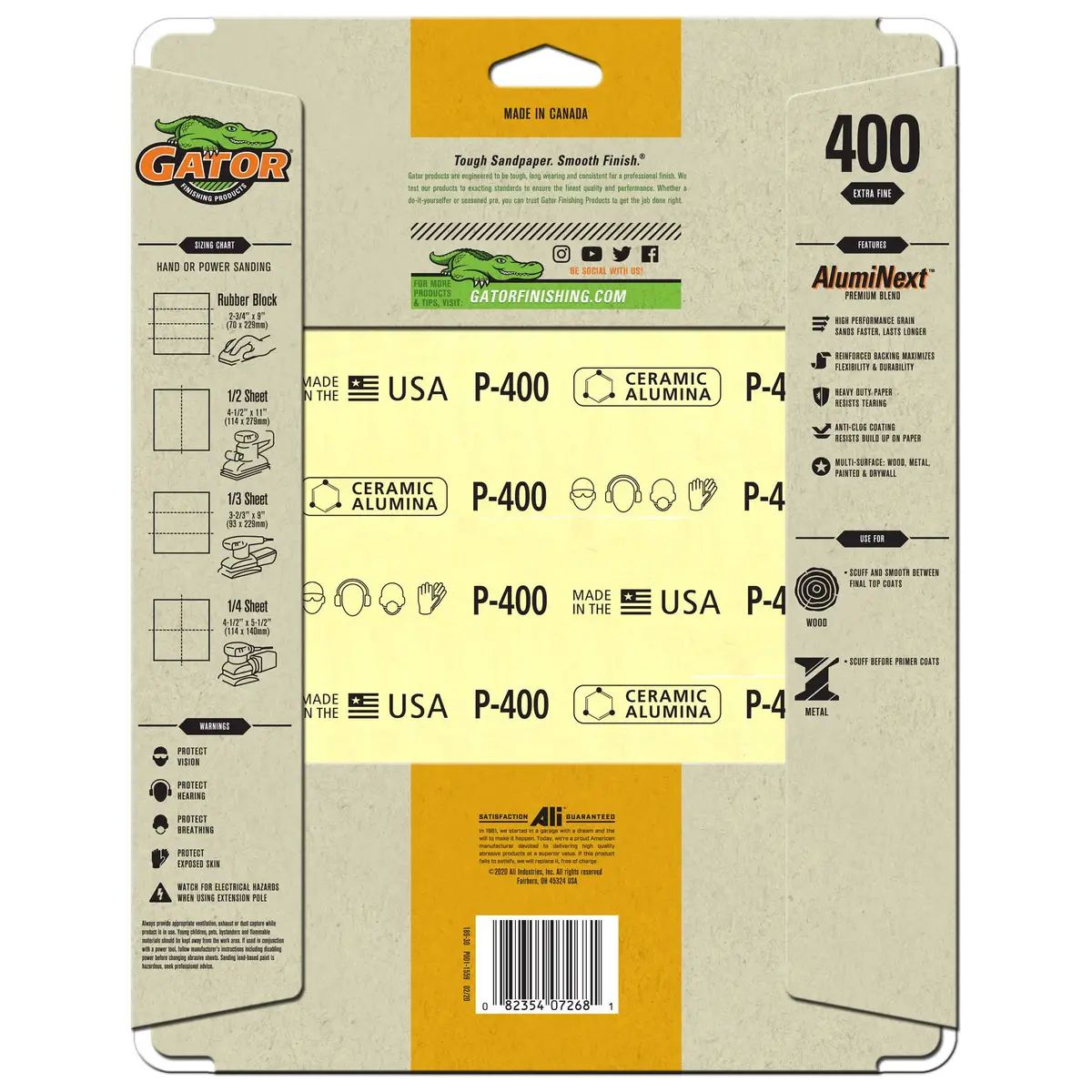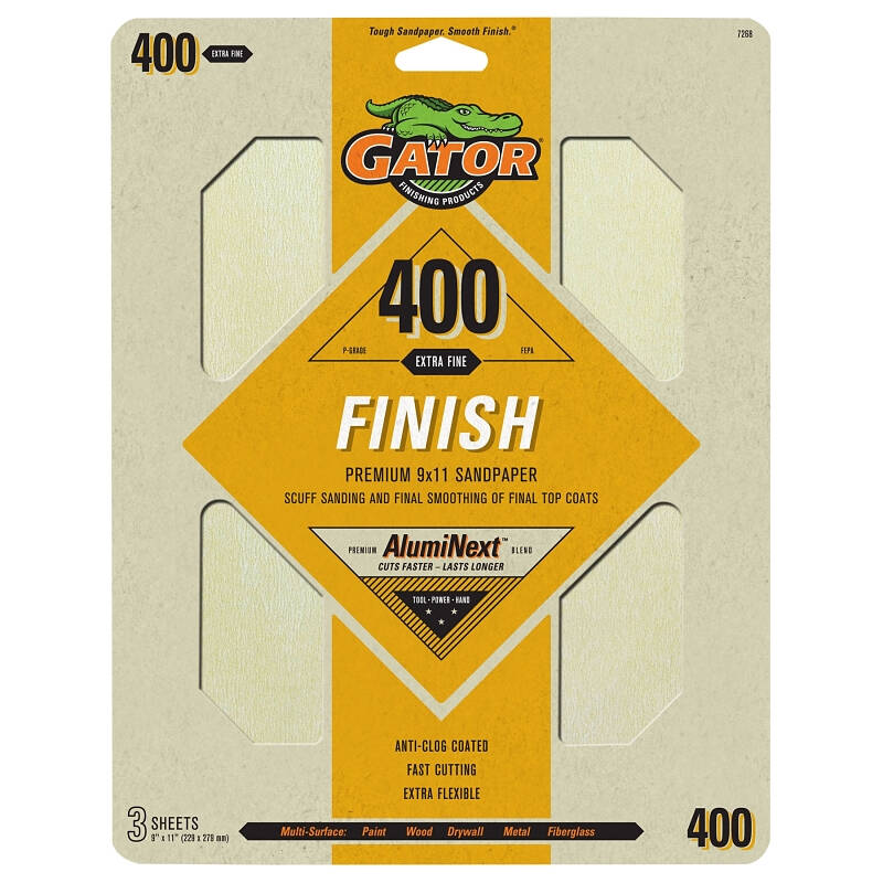 Gator® Premium Aluminum Oxide sheets provide maximum performance and long life. The durable aluminum oxide is bonded to a flexible latex paper making it perfect for hand sanding of irregular surfaces. The anti-clog coating reduces the build-up of sanding dust and particles, keeping the grain exposed for increased performance.