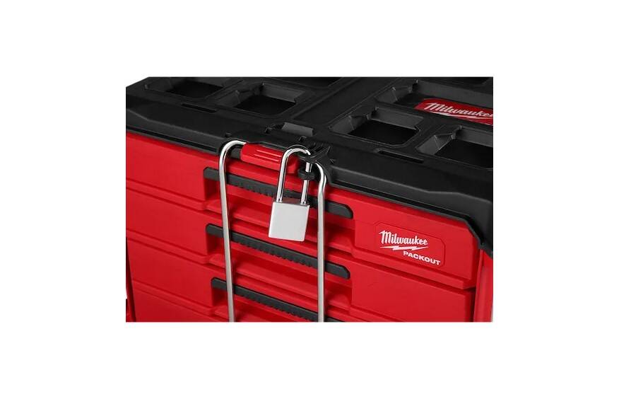 PACKOUT™ 4-Drawer Tool Box has a 50lbs weight capacity and a locking security bar that allows you to padlock the drawers closed, keeping them securely shut during transport. As part of the PACKOUT™ Modular Storage, the 4-Drawer Tool Box allows you to customize your storage system for easy transportation and organization of tools and accessories. This portable tool box with drawers is constructed with impact-resistant polymers, all-metal ball-bearing slides, and metal-reinforced corners for ultimate jobsite durability. The 4-Drawer Tool Box also allows you to customize your drawer layout with Quick-Adjust Dividers (includes 4 set of dividers). The PACKOUT™ Modular Storage System is the industry's most versatile and durable storage system.
