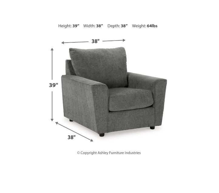 What’s new in neutrals? Shades of gray, of course. Embrace this sophisticated design trend with the gorgeous Stairatt chair, which offers a clean-lined, contemporary style at a comfortably cool price. Sure to lift your spirits, the plush chenille fabric is fabulously neutral. Contemporary flared arms give it a distinctive flair.