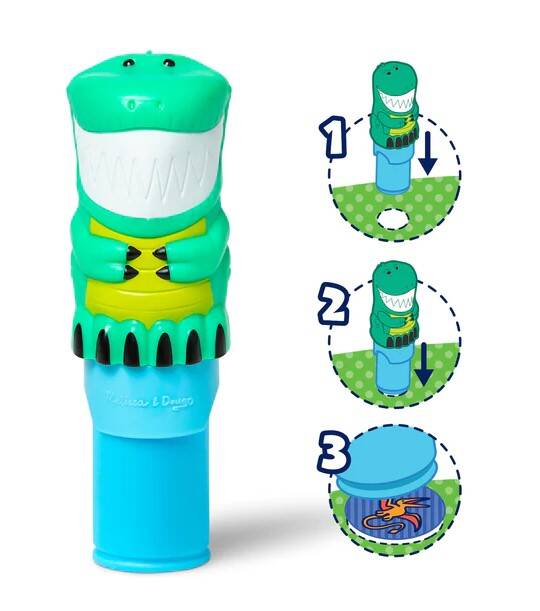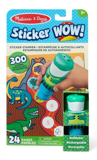 - Melissa & Doug Sticker WOW!® is a whole new way to play with stickers – use the cute, collectible character to stamp prehistoric-themed stickers on the 24-page Dinosaur activity pad and on other creative art projects