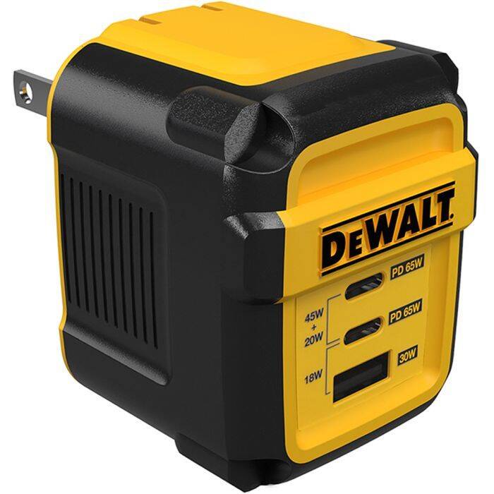The ultimate DeWALT® Jobsite 65W GaN Charger for all your fast charging needs, designed to provide lightning-fast charging.