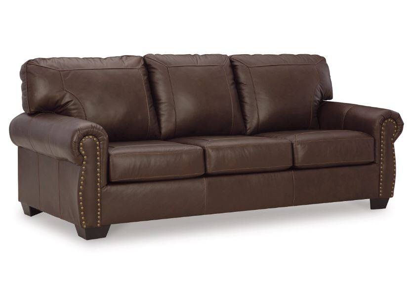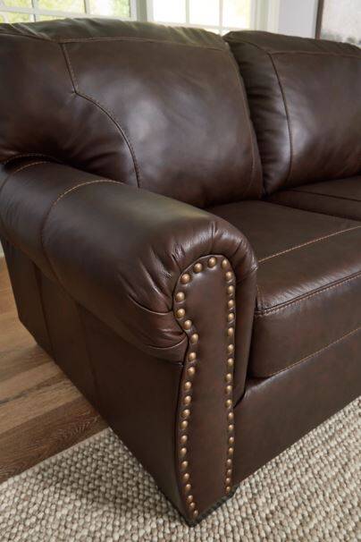 • Genuine leather typically covers inside areas such as the back, seat and arm cushions; skillfully matched faux leather covers the remaining areas