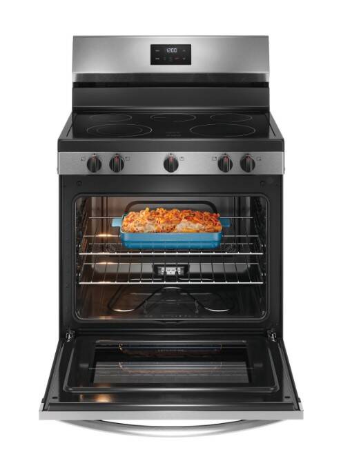 This electric range features a versatile cooktop, including a powerful Quick Boil Element and 2-in-1 Dual Expandable element.