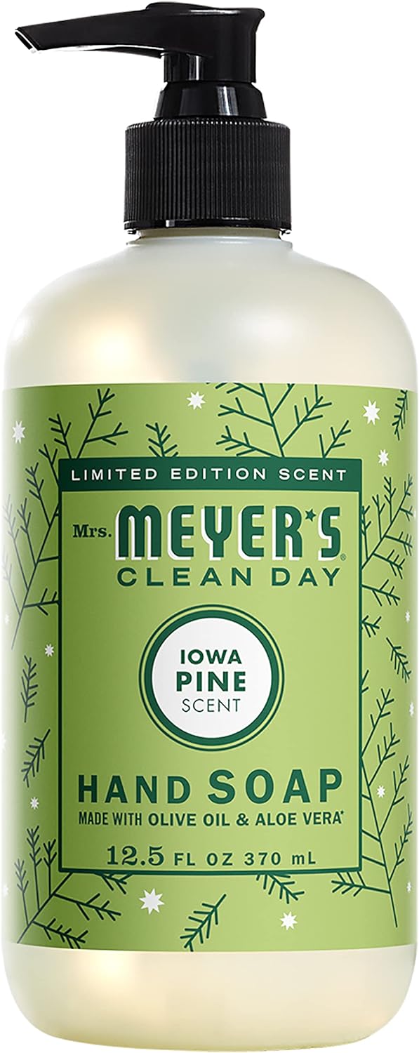 Hardworking, nondrying soap for busy hands.Hand Soap made with essential oils, aloe vera, olive oil and other thoughtfully chosen ingredientsMrs. Meyer's products are mad.e with cruelty-free formulas and are Leaping Bunny certified.Festive Iowa Pine has a wonderful scent of freshly cut trees with a touch of clove and cedar.