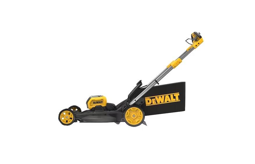 Maintain your property with the completely redesigned DEWALT mower, built from the battery up, for optimal electric cutting performance. The new 60V MAX* Brushless Rear Wheel Drive, Self-Propelled Mower features the patented High Efficiency Cutting System which utilizes the all-new steel cutting deck design, dual blade system, and autosense motor to deliver up to 75 minutes of runtime. The mower folds with one touch for easy storage and comes with 3-in-1 mulching, bagging and rear discharge capabilities.