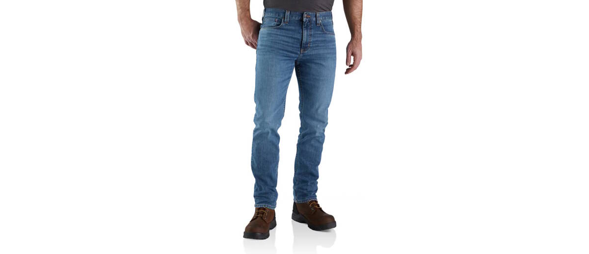 Long hitches or 14-hour days. These men's jeans can stand up to almost anything. They're made of our most durable, abrasion-resistant denim with enough stretch for easy movement. Fitted through the hips and thigh, this fit has a slimmer cut and cuffs that fit over most work boots.