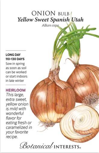 The 'Sweet Spanish' onion was grown in the U.S. at least as far back as 1916. 'Yellow Sweet Spanish Utah' is from that early type, producing large, 3"–6" globe-shaped bulbs with amazingly mild, sweet flavor. A long-day variety, it grows best in states north of the 37th parallel. Utah designated this onion the state vegetable in 2002. Caramelize onions for the perfect patty melt condiment.