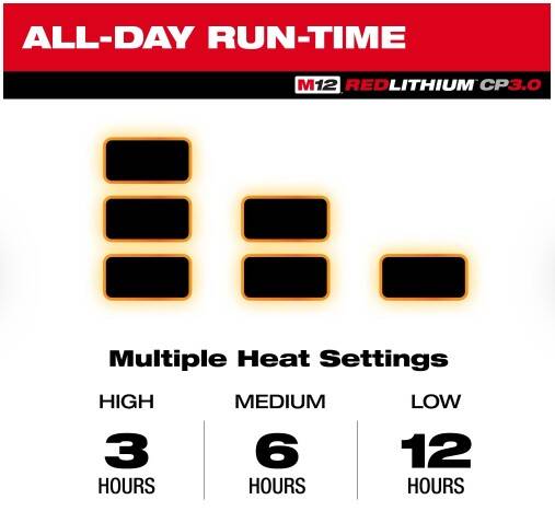 | Includes | (1) M12™ Women's Heated AXIS™ Jacket(F102B-21), (1) M12™ REDLITHIUM™ 3.0 Compact Battery Pack(48-11-2430), (1) M12™ TOP-OFF™ Power Supply and Charger(48-59-1211), (1) USB-C Cable |