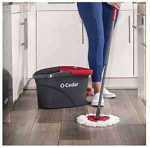 Achieve a deeper clean with the EasyWring™ Spin Mop & Bucket System. The # 1 spin mop**, this easy-to-use system features a foot-activated pedal that allows for hands-free wringing and controlled water release. Complete with a microfiber mop head, the multi-purpose system removes over 99% of bacteria with just water* - or pair with O-Cedar PACS for an even deeper clean. Plus, our microfiber mop heads are washable and reusable, meaning you can save up to 4x annually on cleaning costs over the leading disposable spray mop.***